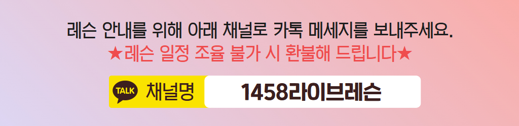 1458CLASS는 레슨 종료시까지 무한 시청이 가능한 레슨 녹화 복습 영상을 제공해 드립니다. 실제로 많은 수강생 분들이 만족해 주시는 이유가 바로 이 복습 영상이랍니다.