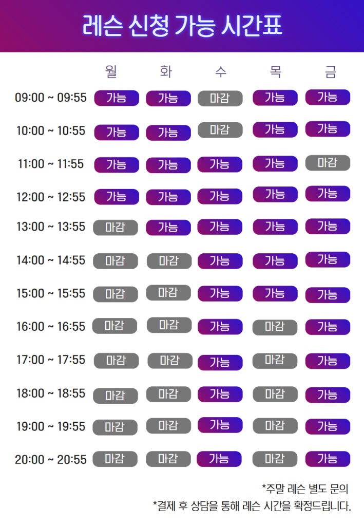 - 수업 시간 조정은 월 1회에 한해 가능합니다.